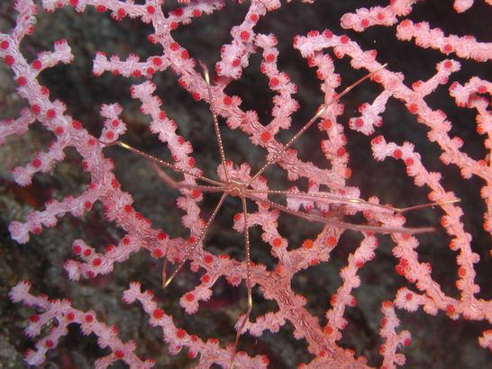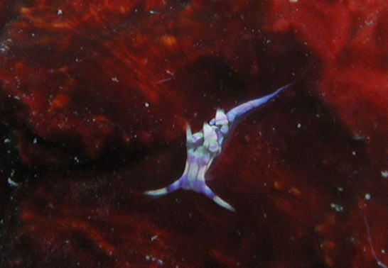 おっ。やっていた。初めて見るのエビだ。いや、ネットでは頻繁に見るのだが、自分で見つけるのが初めて。ホストのナンヨウキサンゴはモルディブにもわんさかはえている。向こうではガンガン流れているのでこんなエビを探したことはないけれど、きっとモルディブにもたくさんいるんだろうな。いつか見てみたい・・・と思っていたけれど、今日はあっさり見つけられた。嬉しい。
