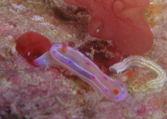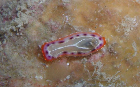 うーん・・・。もっと珍しい奴かと思っていたけれど、チゴミノウミウシですね。ボケボケ写真でごめんなさい。