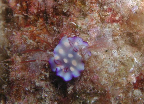キカモヨウウミウシには紫色のコペボーダがついていました。