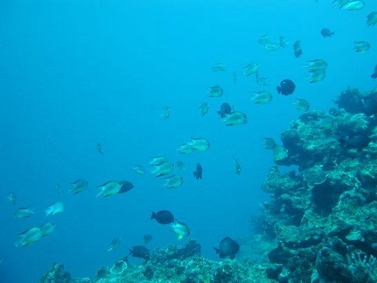 ナミスズメダイがたくさん群れていました。