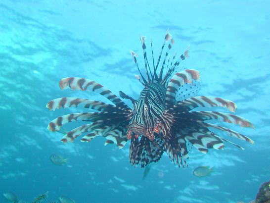 ハナミノカサゴが浮いていました。透明度の良さがわかる写真ですね。